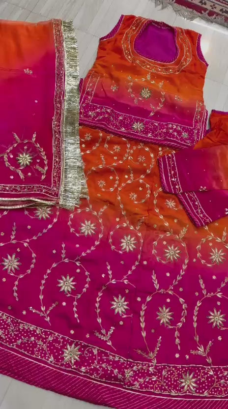 Thakur Ji Pure Shaded Ranka Work Poshak (Rani Orange)-661